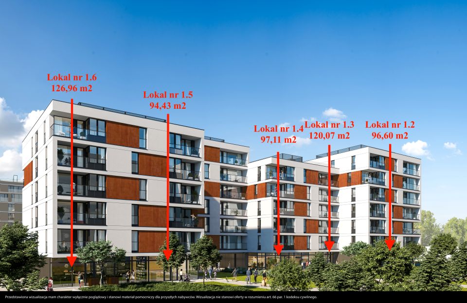 Do wynajęcia lokal z przeznaczeniem handlowo-usługowym o powierzchni 94,43 m2 położony na parterze nowoczesnego apartamentowca przy ulicy Rydygiera 16.