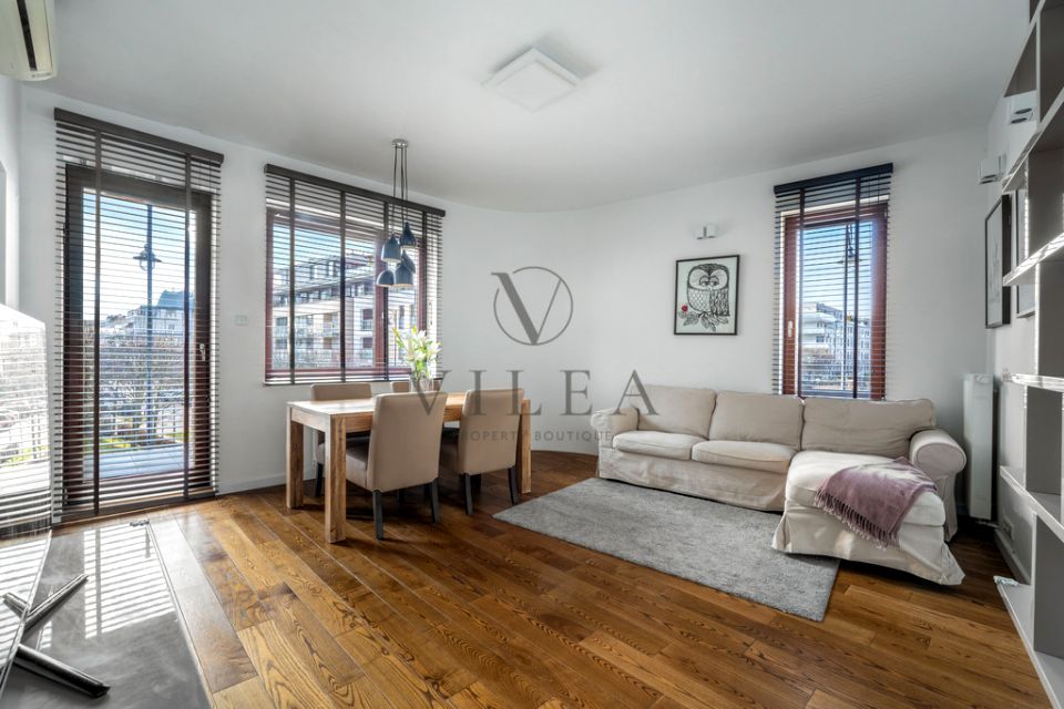 Apartment DetailsHallway with a built-in wardrobe and a shoe cabinet.Beautiful living room (21 sqm) with access to an almost 8 sqm balcony facing southwest.Modern kitchen (8.8 sqm), partially open to the living room, with a window.Attractive bedroom (12.6 sqm) with a double bed and a built-in fortable bathroom (5 sqm) with a shower, sink, toilet, and a built-in washing machine.The apartment is fully furnished and finished with great attention to detail for the most demanding residents. A fantastic move-in-ready offer!