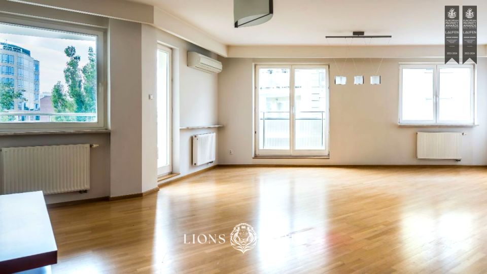 145m2 Jasny i przestronny W pełni wyposażony w sprzęt AGD Klimatyzowane ( salon i sypialnia) Nieumeblowane ale na życzenie najemcy można doposażyć