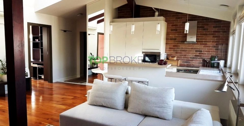 Dwupokojowe mieszkanie do wynajęcia na poddaszu w odnowionej kamienicy z lat 30-tych o powierzchni 75 m2, piętro 4/4. Mieszkanie znajduje się przy ulicy Kieleckiej, Górny Mokotów. Apartament jest bardzo słoneczny, cichy z klimatem, idealny dla singla lub pary. Widok z okien na dachy Starego Mokotowa. W okolicy mnóstwo lokali usługowych oraz restauracji. 3 min do metra "Pole Mokotowskie" 3 minuty spacerem.